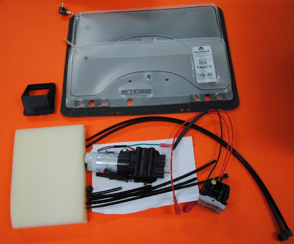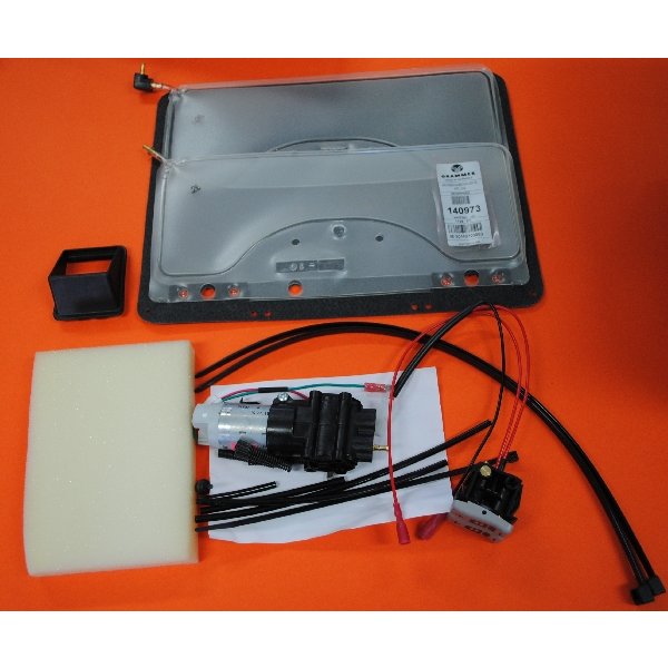 The Grammer Air Lumbar Kit, part number 140973, is a comprehensive solution designed to enhance lumbar support in seats fitted with the MSG 97AL and MSG 95A series suspension systems. This kit includes everything needed for installation and operation: a compressor, a switch for controlling the lumbar adjustment, air lumbar bags for customized support, and the necessary wiring for seamless integration.