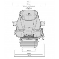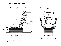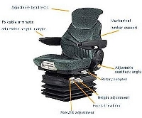 The entry-level air suspension seat, specifically designed for 12 & 24-volt systems, incorporates the G Series Suspension. This seat is shown with optional features including a headrest, armrests, and a seat belt, which enhance both comfort and safety.