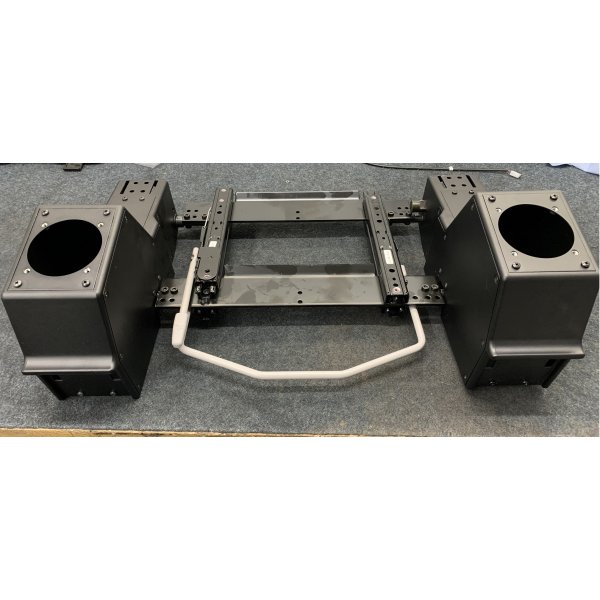 This Grammer seat pod assembly is designed to suit both the MSG 95 Series and MSG 97AL Series seats, providing a stable and durable foundation for seat installation. Also referred to as a "Control Carrier," it comes equipped with two pairs of seat slides (tracks) for smooth and precise seat adjustments, ensuring optimal comfort and positioning for the operator.